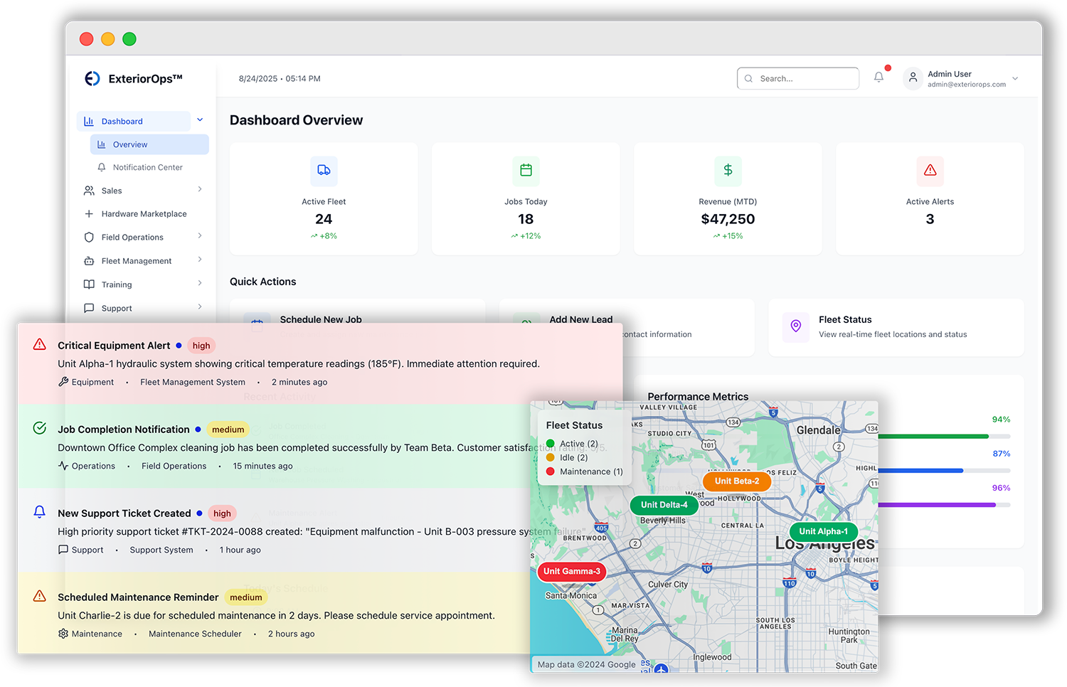 Stratos delivers precision in the field, even when GPS and compasses fail, while ExteriorOps™ streamlines sales, compliance, fleet management, training, and operations all in one centralized platform. Together, they form the first fully integrated ecosystem for exterior maintenance.